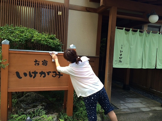 お宿いけがみ では掃除をすると何かいいことがあると、言うジンクスがあります すると、
